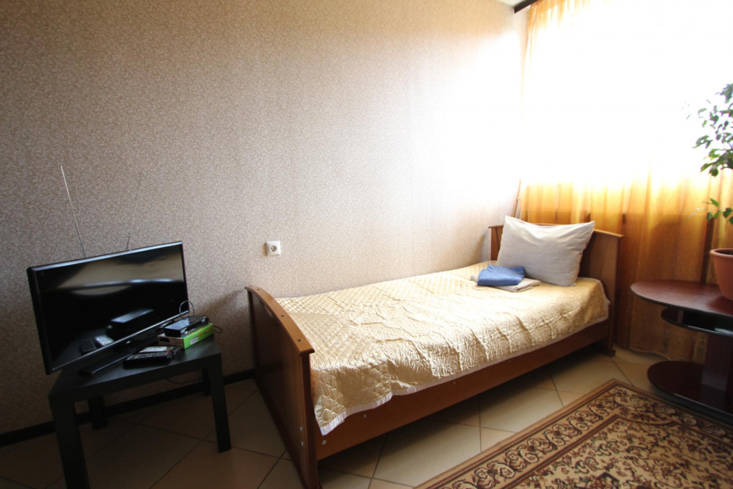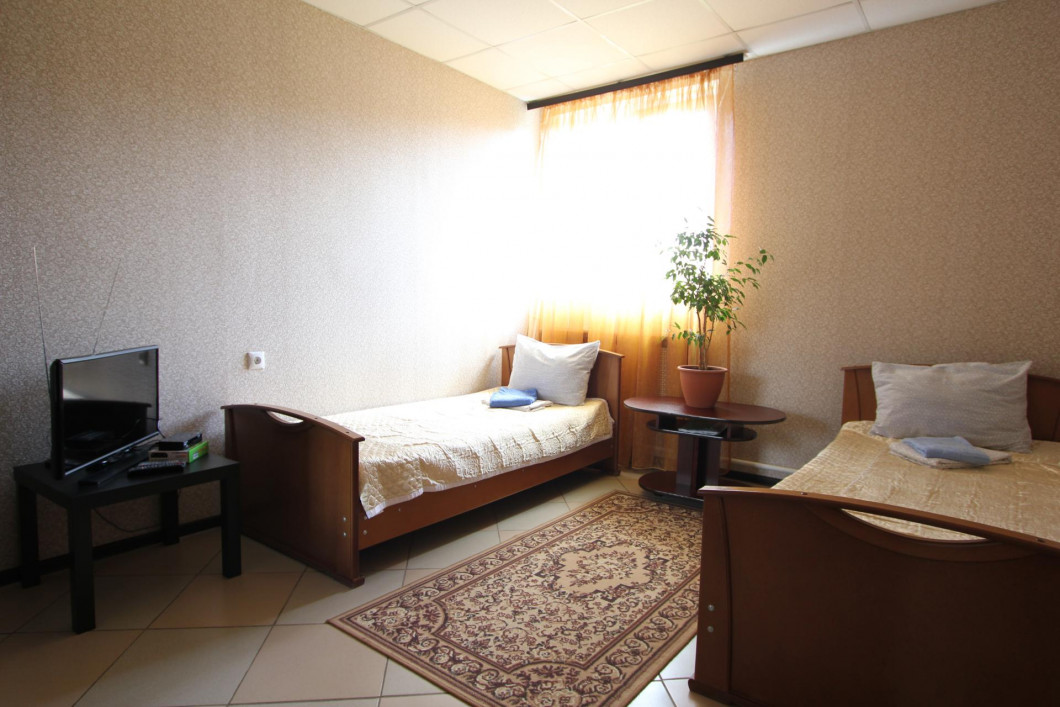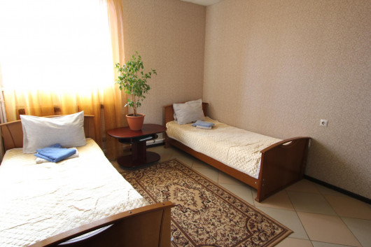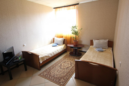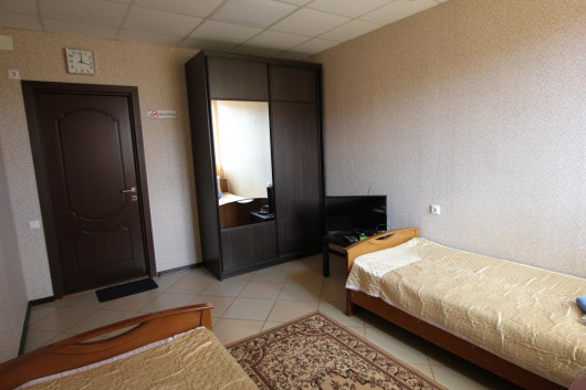 Номер эконом стоимостью 800 рублей в сутки с человека. Большой, просторный номер с телевизором. В номерах эконом общий санузел и душевая на три комнаты. В наличии двухместный, пяти местный,четырехместный номера.